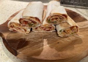 Tym razem przepis na szybką ciepłą przekąskę a’la pizza. Jest to rollo pizza. Do przygotowania tej przekąski potrzeba kilka placków tortilli, passatę pomidorową lub pomidory krojone w puszce, 30 dag startego sera mozarella, oliwki bez pestek, 20 dag szynki konserwowej lub innej podobnej wędliny, sól i pieprz oraz suszone zioła bazylia i oregano. Ja do przygotowania sosu użyłem krojonych pomidorów w puszce, chyba najlepiej się nadają.