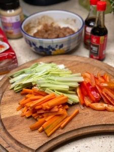 Moje pierwsze kaszotto zrobiłem z miesiąc temu. To było klasyczne kaszotto bez żadnych dodatków, no jeden był kapary. Teraz kaszotto podałem jako danie główne, czyli przygotowane z mięsem i warzywami. Do mojej wersji kaszotto wykorzystałem dwa filety z piersi kurczaka, jedną paprykę czerwoną, jedną mini cukinię, 5 pieczarek, szklankę kaszy pęczak. To są składniki podane na porcję dla dwóch osób. Oczywiście przyprawy sól, pieprz, pieprz ziołowy oraz tak ¾ litra wywaru rosołowego, łyżeczkę masła i dwie łyżki startego parmezanu. Mięso dzień wcześniej pokroiłem w małą kostkę i zamarynowałem w pieprzu ziołowym z dodatkiem oliwy. Paprykę oczyszczamy z nasion i kroimy w kostkę, pieczarki obieramy ze skórki i kroimy w grubszą kostkę, cukinię bez obierania kroimy w małą kostkę. Kaszę przed gotowaniem płuczemy kilka razy w zimnej wodzie.