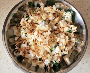 W ostatnim czasie odkryłem nowe warzywo, które nie raz widziałem w marketach, ale jakoś nigdy do mnie nie przemawiało. Jest to biała rzodkiew. Z wyglądu to taka wielka pietruszka, a w smaku kuzynka naszej kulistej czerwonej rzodkiewki. Miałem więcej czasu w domu więc trochę eksperymentowałem w kuchni, a przy okazji wypróbowałem to warzywo. Rzodkiew stała się podstawą mojej sałatki. Oprócz rzodkwi będą potrzebne 4 jaja, puszka groszku, 3 łodygi selera naciowego, połowa pora (tej białej części), majonez, sól i pieprz.