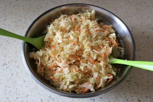 Ostatnio coś mało gotuję, chyba to gorące lato nie sprzyja specjalnie siedzeniu w kuchni przy garnkach w tak wysokiej temperaturze. Trochę mam wyrzutów sumienia z tego powodu, bo nie wymyślam nowych przepisów i nie doskonalę moich umiejętności kulinarnych. Dziś jest święto i wolne więc postanowiłem przygotować obiad, tym bardziej, że na 15-go sierpnia przypada rocznica ślubu moich Rodziców więc będzie to miły prezent jednocześnie. W tym wpisie podam przepis na dodatek do dania głównego, czyli surówkę. Przepisu na danie główne, czyli kormę z kurczaka, możecie poszukiwać w jednym z kolejnych wpisów. Do przygotowania surówki będzie potrzebna główka białej kapusty, 2 kubeczki śmietanki 30%, dwie marchewki, dwie cebule, sok z połowy cytryny, łyżeczka lub dwie cukru.