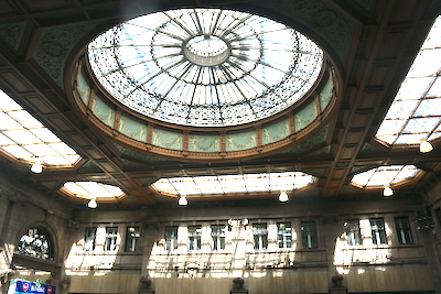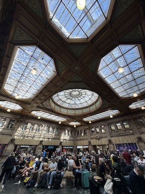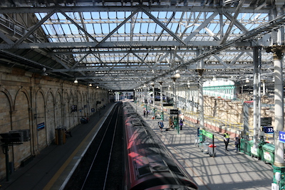 Pierwsza na liście była Cockburn St, magiczna zakręcona ulica z cudownymi kamieniczkami, wyglądającymi jak z bajki. Będąc w Edynburgu, nie można jej nie odwiedzić. Zatrzymaliśmy się tam na chwilę by odpocząć przy kawie. O jednym przy okazji muszę uprzedzić, Edynburg to miasto położone na wzgórzach więc spacer po nim przypomina trochę wspinaczkę górską, raz jest pod górę, raz w dół, czasem po wysokich kilkudziesięcio stopniowych schodach. Idąc dalej Cockburn St doszliśmy do zabytkowego dworca kolejowego. Stare perony i zabytkowa hala dworcowa z niesamowitym przeszklonym dachem robią duże wrażenie. Z dworca wąskimi schodami Fleshmarket Cl wróciliśmy na trakt królewski, czyli High St i ruszyliśmy dalej w kierunku zamku.