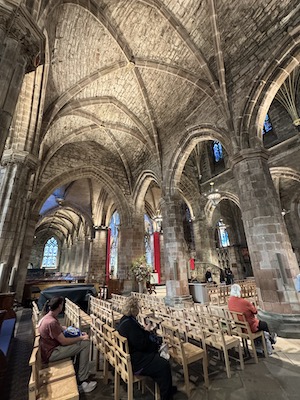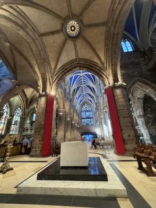 Przy High St znajduje się przepiękna gotycka katedra Św. Idziego, warto odwiedzić, polecam. Wzdłuż High St, a potem Lawnmarket znajdują się dziesiątki sklepików z pamiątkami, restauracji, pubów, sklepów ze sztandarową szkocką whisky. Jest tam też The Scotch Whisky Experience, dla miłośników słynnego trunku, jednak my nie odwiedziliśmy tego miejsca. Po drodze zrobiliśmy sobie jeszcze jeden przystanek na schłodzone piwo i udaliśmy się już na zamek. Polecam kupić bilety wcześniej, my dokonaliśmy zakupu jeszcze w Polsce przez Internet.