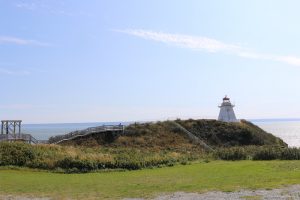 W ciągu dnia między odpływem i przypływem udało się nam jeszcze odwiedzić rezerwat przyrody Cape Enrage z malutką latarnią morską na końcu klifu. Widok spod latarni na zatokę robi wrażenie, a latarnia z daleka wygląda jak domek dla lalek. Niestety wjazd na parking jest płatny 6 CAD od osoby, z uwagi iż jest to obszar rezerwatu przyrody. Ciekawostką jest, że przy latarni znajduje się dom, w którym restaurację prowadzi Polak. My jednak postawiliśmy na piknik na świeżym powietrzu, z cudowną panoramą zatoki z latarnią morską w tle. Po krótkim pikniku nad zatoką udaliśmy się z powrotem do Hopewell Rocks, by zobaczyć przypływ. Do Hopewell dotarliśmy około 17-tej, gdyż o tej porze był najwyższy przypływ. Przypływ obserwowaliśmy już z punktów widokowych na szczycie klifu w Hopewell. Oglądając zdjęcia trudno to sobie wyobrazić, ale w rzeczywistości to wygląda niesamowicie. Najpierw spacerujesz między skałami wzdłuż brzegu, a po kilku godzinach nie ma śladu plaży i głazów, a woda sięga kilku metrów zalewając najniższy poziom schodów.