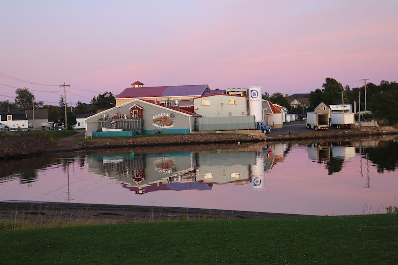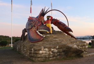 W odległości około 25 kilometrów znajduje się o wiele ciekawsze Shediac, z największym pomnikiem homara na świecie. No cóż tu ukrywać, Nowy Brunszwik słynie z połowów największych homarów na świecie. Do Shediac trafiliśmy niemal przed zmrokiem. Na szczęście udało nam się jeszcze zrobić kilka zdjęć pod tym homarowym pomnikiem, nim zrobiło się całkiem ciemno. Pomnik znajduje przy wjeździe do Shediac od strony zachodniej, tam gdzie rzeka Scoudouc wpływa do oceanu. W okolicach pomnika znajduje się biuro informacji turystycznej i urocze kolorowe domki, w których znajdują się sklepiki z pamiątkami. Niestety dotarliśmy tam na tyle późno, że wszystko było już pozamykane, a szkoda, bo te domki wyglądały niezwykle bajkowo. Na chwilę jeszcze pojechaliśmy do samego Shediac. Na spacery było już późno, ale samo centrum miasteczka zasługuje bez wątpienia na krótki spacer. Z uwagi iż było już ciemno i dość zimno nie chciało się już nam spacerować, tylko przejechaliśmy autem przez całe Shediac w poszukiwaniu jakiejś homarowej restauracji. Dużo knajpek było już pozamykanych, ale udało się nam trafić do japońskiej restauracji Pink Sushi&Grill Bar in Shediac. Tutaj spróbowałem mojego pierwszego sushi na ciepło i pierwszego homara, choć homara były w tym daniu dosłownie małe kawałeczki. Uwielbiam tradycyjne sushi, ale to też było przepyszne, choć specyficzne bo podane z ciepłym sosem warzywnym. Spokojnie mogę polecić to miejsce, przemiła obsługa i smaczna kuchnia, czego więcej potrzeba i do tego ciekawie urządzone wnętrza. Po pysznej kolacji pojechaliśmy prosto do motelu w Moncton, gdyż plany na kolejny dzień były dość intensywne.