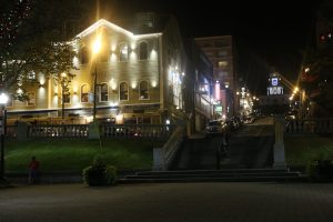 Ciekawym miejscem jest Place Royale, z tymi niesamowitymi kamieniczkami, wyglądającymi jak żywcem wyjęte ze średniowiecza, tylko wymuskanymi, nowiutkimi. Nie wiem dokładnie, czy po rewitalizacji, czy wybudowane na nowo w takim stylu, ale dla mnie są cudowne. Idąc od Place Royale w lewo, przez Rue Notre-Dame, a następnie Rue du Sault-au-Matelot dojdziemy do ciekawej fontanny La Vivriere. Cała stara część miasta Quebec ma taki właśnie niesamowity, historyczny klimat. Z kolei schody łączące ulice Cote de la Montagne i Rue Sous le Fort, wyglądają jak wyjęte z dzielnicy Mont Marte w Paryżu i wstawione na kanadyjskiej ziemi. Na stare miasto warto wybrać się za dnia, kiedy jest jeszcze jasno by pooglądać te urokliwe kamieniczki i niesamowite murale znajdujące się w tej części miasta. Wyobrażam sobie, że spacer tymi wąskimi uliczkami po zmroku też musi być niesamowitym przeżyciem, kiedy te wszystkie sklepiki i knajpki są roziskrzone od świateł i ozdób.