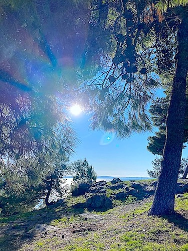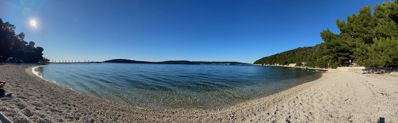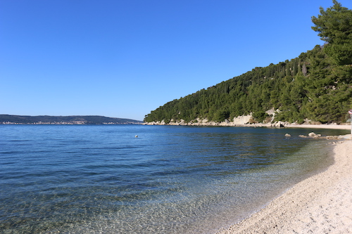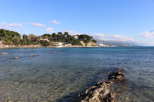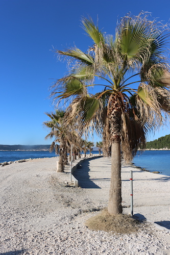 Na zachód od Splitu znajduje się Park Šuma Marjan, z cudownymi miejscami, czyli Plażą Za Pse i Kasjuni. Jest tam charakterystyczny cypel wychodzący w morze, na którym rosną palmy, co stwarza wrażenie klimatu rodem niemal z Hawajów. Jedyną bolączką chorwackich plaż jest brak piasku, tylko drobne kamyczki, na których ciężko się wygodnie ułożyć, po prostu trzeba mieć leżak i tyle. Woda jednak w każdym miejscu jest błękitna. Plażę Kasjuni odwiedziliśmy w Nowy Rok, panowała tam cisza i spokój, przez połowę dnia praktycznie byliśmy tam sami, co jakiś czas przebiegał tylko ktoś trenujący jogging, a dopiero po południu zaczęli się pojawiać inni spacerowicze. Do plaży Kasjuni można dojechać miejskim autobusem z przystanku znajdującego się na zachodnim końcu Splitskiej Rivy, przy Placu dr. Franje Tudmana (przystanek Sv. Frane). Przejazd zajmuje około 15 minut. Te miejsca w okolicach Splitu udało mi się zobaczyć spędzając te kilka dni w tym cudownym mieście.