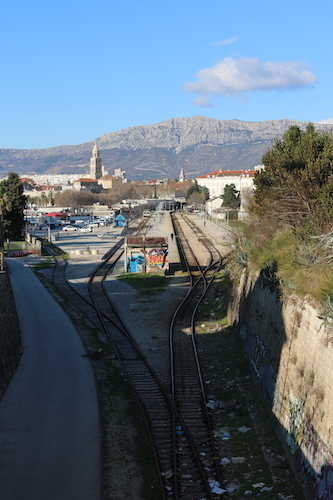 Ale Split to nie tylko promenada i urokliwa starówka. Na południowy – wschód od starówki i promenady, za stacją kolejową i dworcem autobusowym, ograniczona ulicą Šetalište Petra Preradovića znajduje się Plaża Bačvice. Cudowne miejsce, gdzie można wypocząć, poopalać się, popływać. Niestety piasek na plaży nie jest złocisty, tylko szaro – bury. Woda jest jednak błękitna i przezroczysta, jak w całej Chorwacji. Jak ktoś nie lubi wygrzewać się w słońcu na piasku, może sobie usiąść na jednej z ławeczek poustawianych wzdłuż deptaku ciągnącego się po zachodniej stronie Bačvic, w kierunku Parku Pomoraca. Z tej promenady jest też możliwe zejście bezpośrednio do morza. Park Pomoraca położony jest w stosunku do plaży na wzgórzu, na klifie. Aby tam się dostać musimy się cofnąć do ulicy Šetalište Petra Preradovića, przejść mostem Bačvice nad torami i już jesteśmy w parku. Z parku rozpościera się cudowny widok na morze, plażę i port, a na horyzoncie rysują się kontury wyspy Brač. Owszem, jest krótsza droga do parku prosto z plaży, ale trochę niebezpieczna, musimy przecisnąć się między ogradzającą wzgórze siatką, uważając by nie spaść na dół, jest tam dosyć wąsko więc jakbyście wybierali tę drogę, to uważajcie. No ja wybrałem tą droge, ale do plaży wracałem już przez most i od strony ulicy.