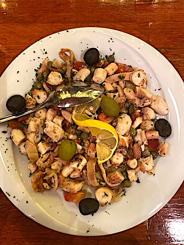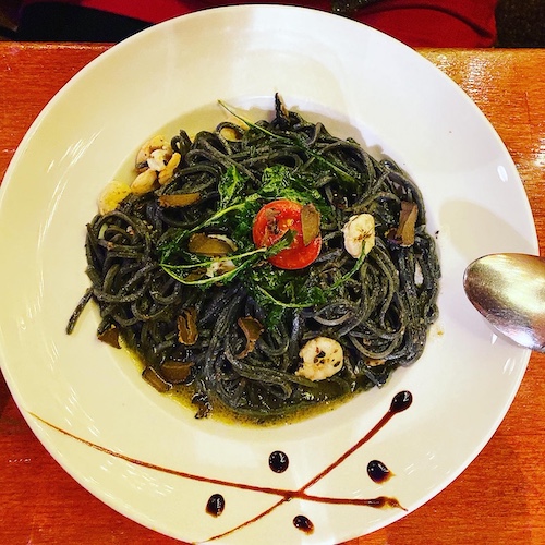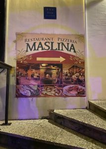 W restauracjach nie zawiedziemy się na jedzeniu, wiadomo natomiast, że przy promenadzie jest najdrożej, warto poszukać mniejszej restauracji w tych wąskich uliczkach, a na pewno będzie przepysznie, no i taniej. My przez przypadek znaleźliśmy Pizzerię Maslina, w której stołowaliśmy się aż trzy razy. Restauracja nie znajduje się bezpośrednio przy deptaku Marmontova, ale jest lekko ukryta między murami i za wąskim przejściem najpierw po schodkach, a później wzdłuż muru między kamienicami. W godzinach szczytu, bez rezerwacji, ciężko jest tam o stolik, no cóż jedzenie serwowane tam jest doskonałe. Punktem orientacyjnym jest placyk przy deptaku Marmontova, przy domu towarowym, w którym znajduje się ZARA, a restauracja znajduje się w głębi placu po prawej stronie, po schodkach w górę.